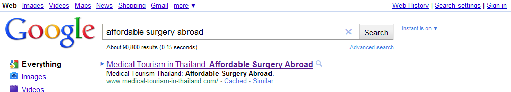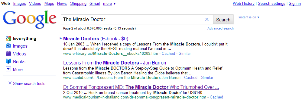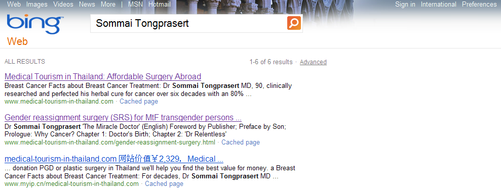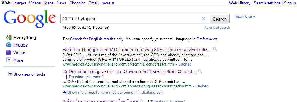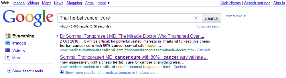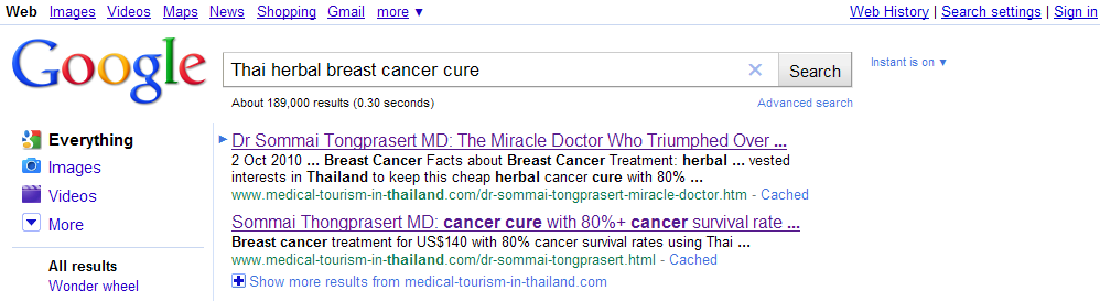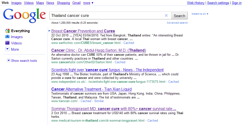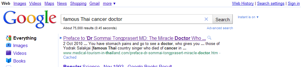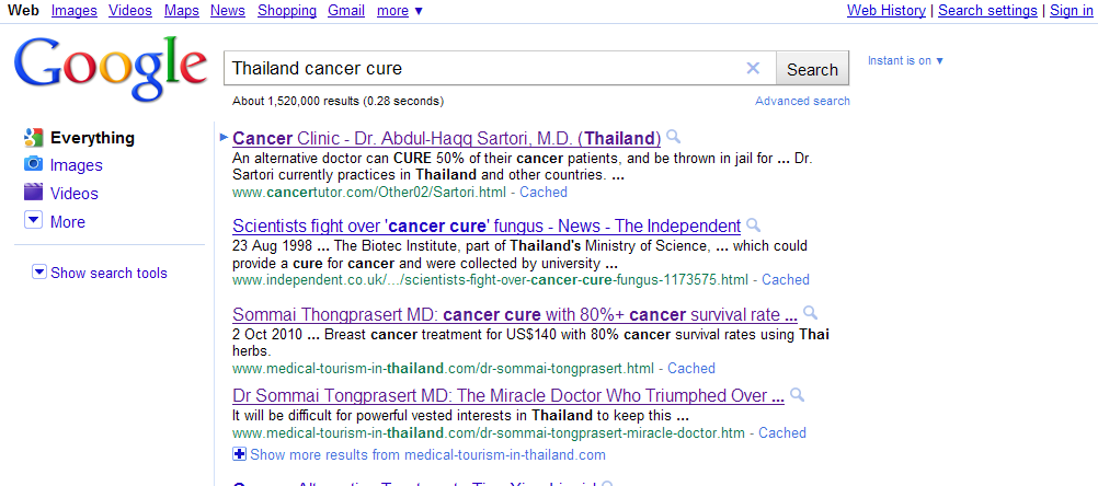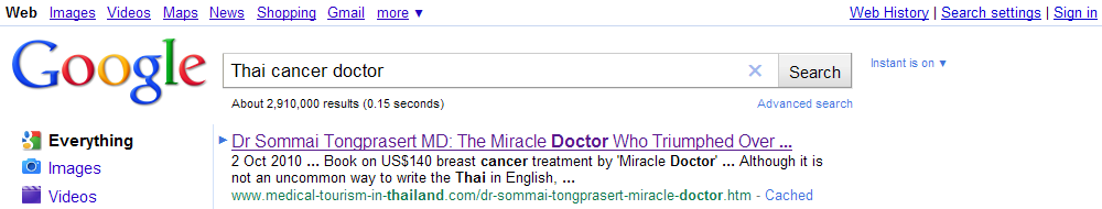 NEW 27 Nov 10 Google #5: "Thailand cancer doctor"