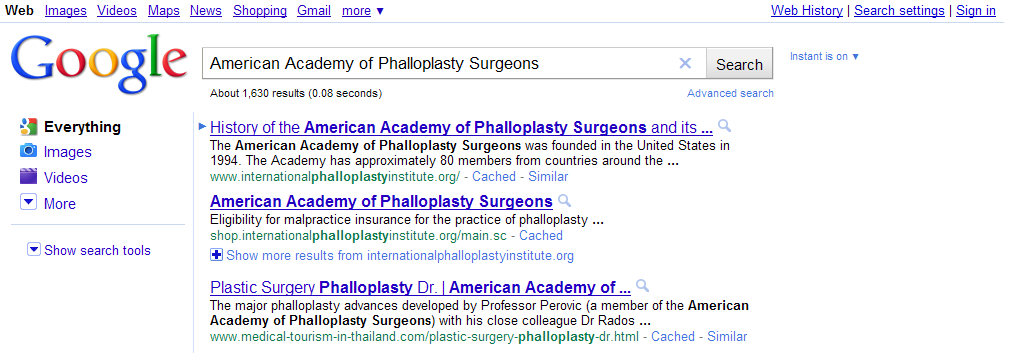 Google #3: "American Academy of Phalloplasty Surgeons"
