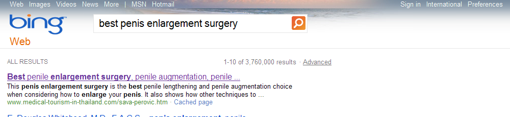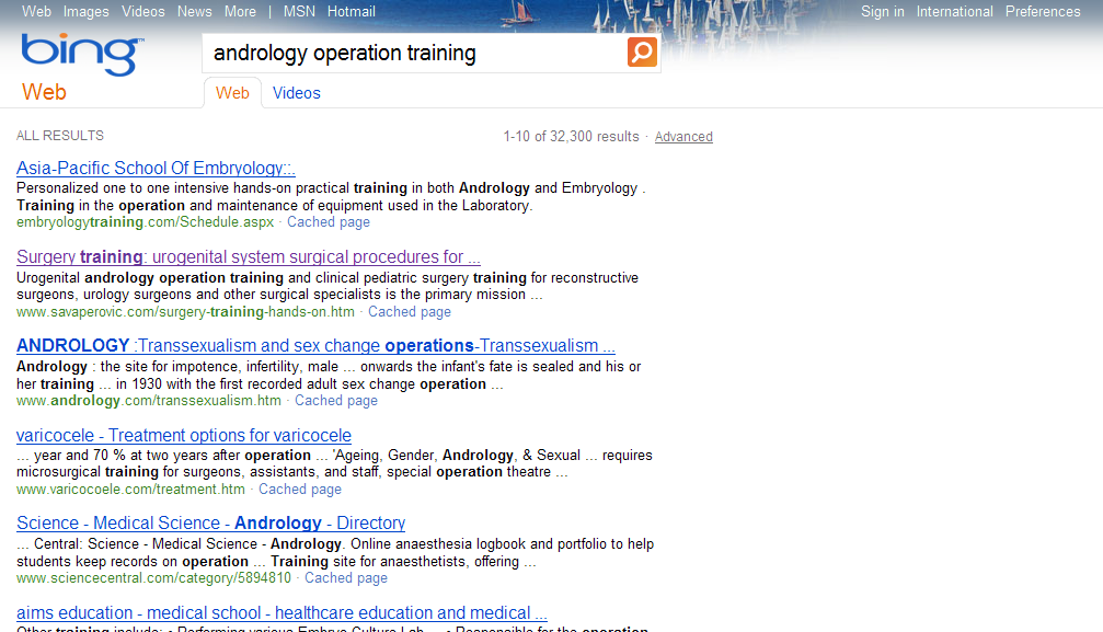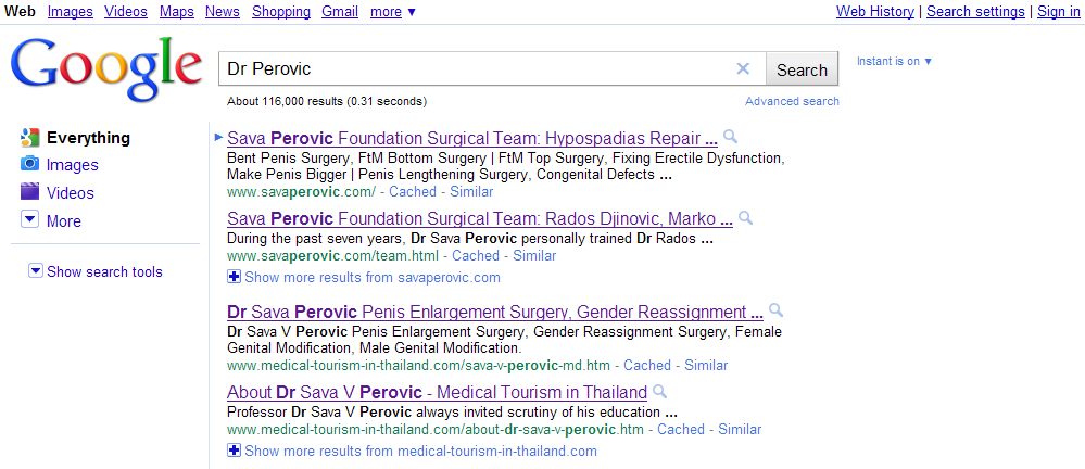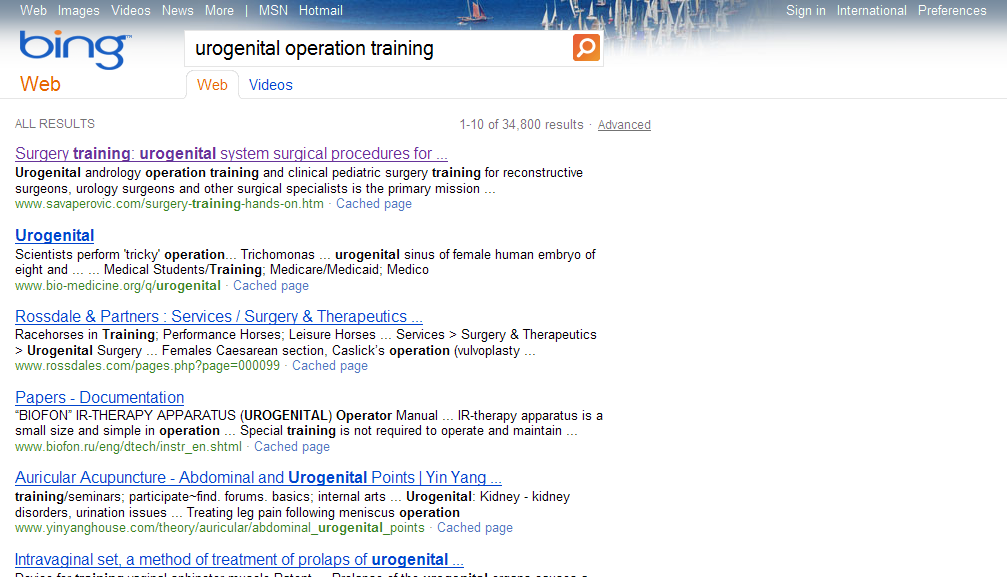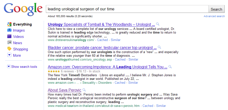 NEW 28 Nov 10 Bing #1, #2 & #3 "world's best urogenital reconstructive surgeon"