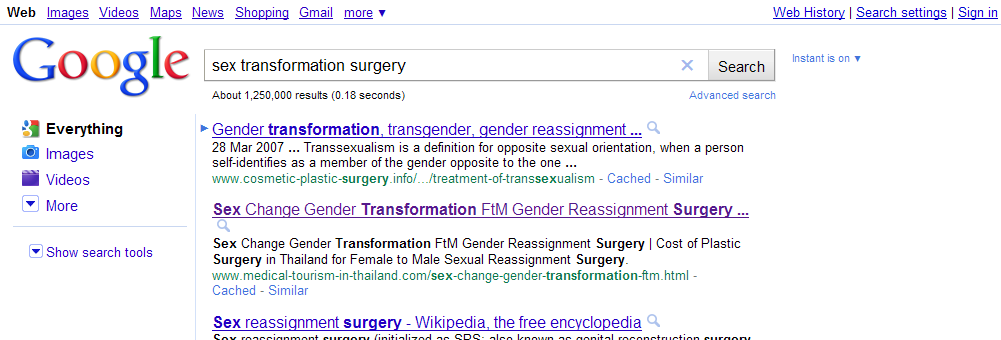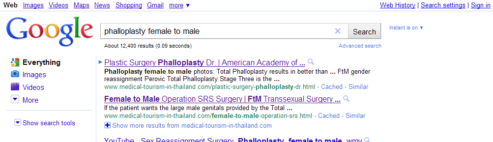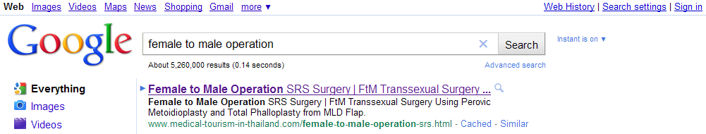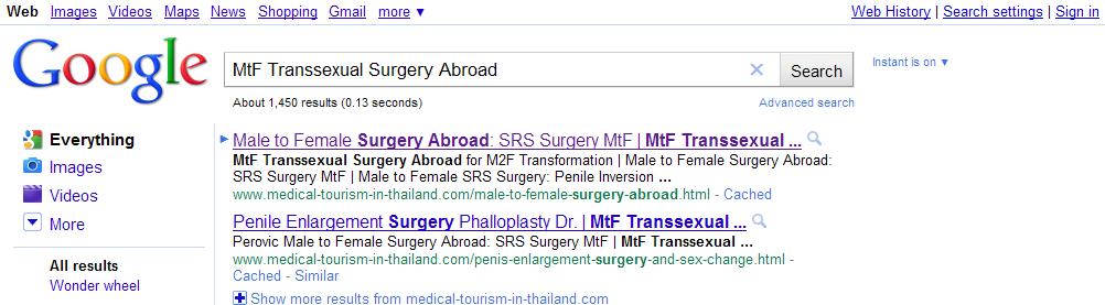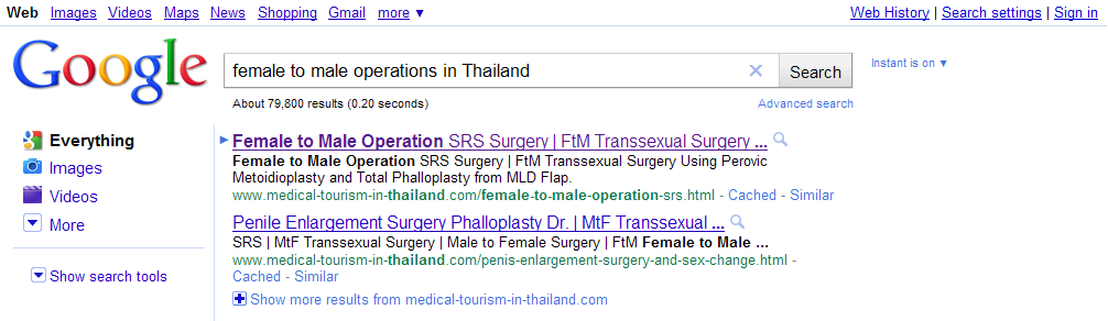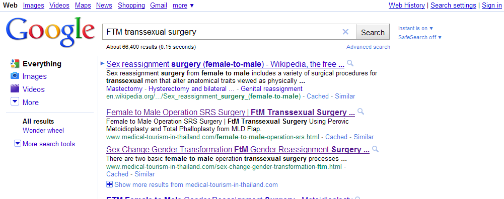 Google #1 & #2 "MtFtranssexual surgery abroad"
