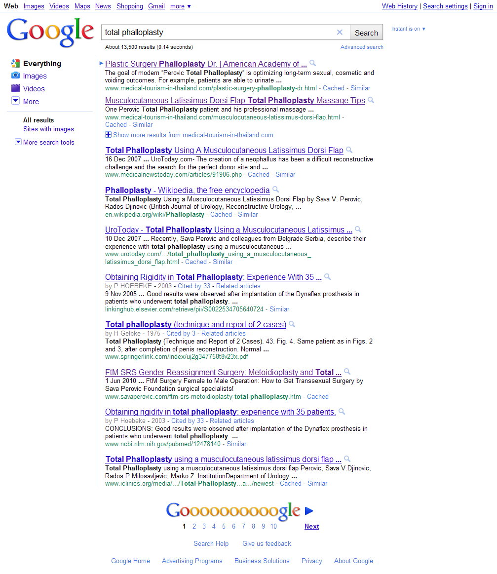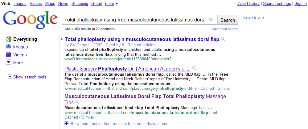 Google #4 and #5 for "total phalloplasty using musculocutaneous latissimus dorsi flap"