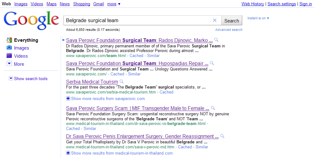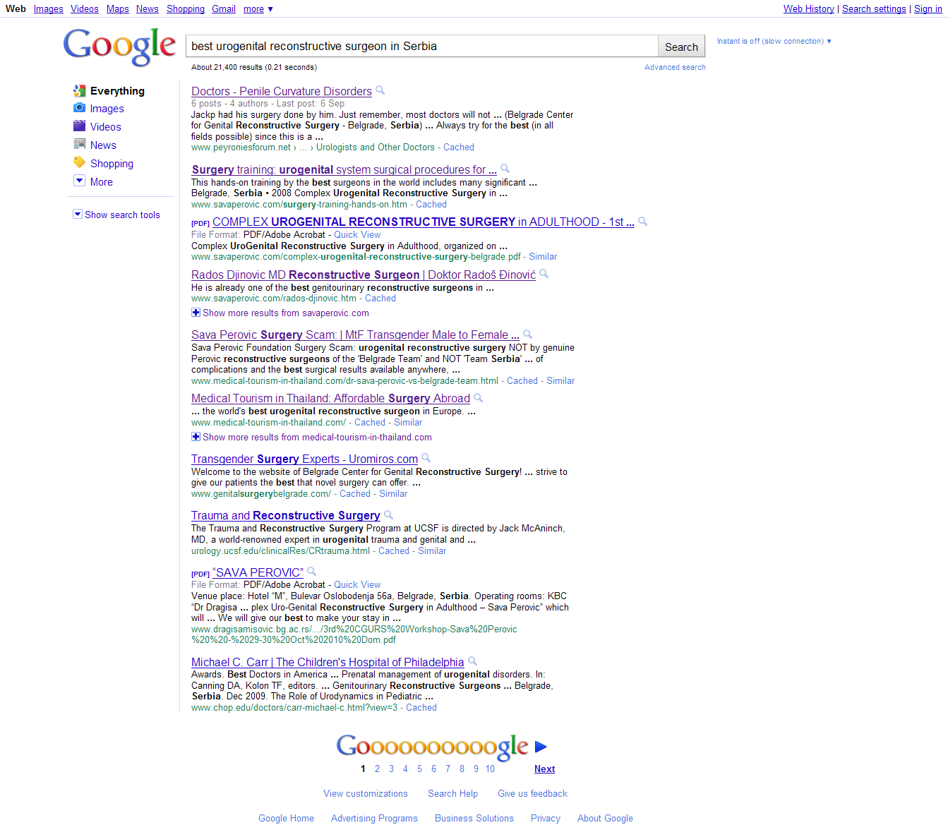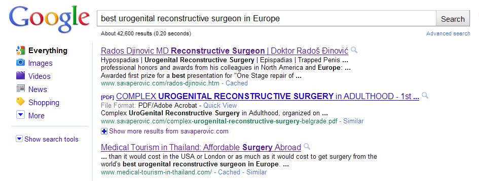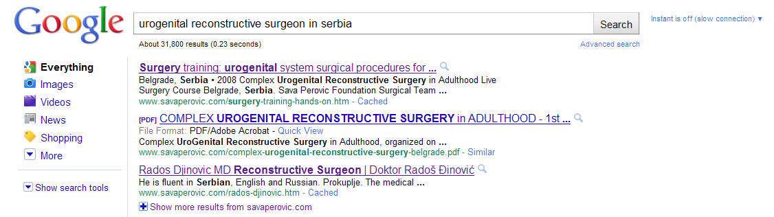 Google #1, #2, #3, #9 & #10 "urogenital reconstructive surgeon in serbia"