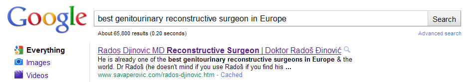 Google #1 "best genito-urinary reconstructive surgeon in Europe"