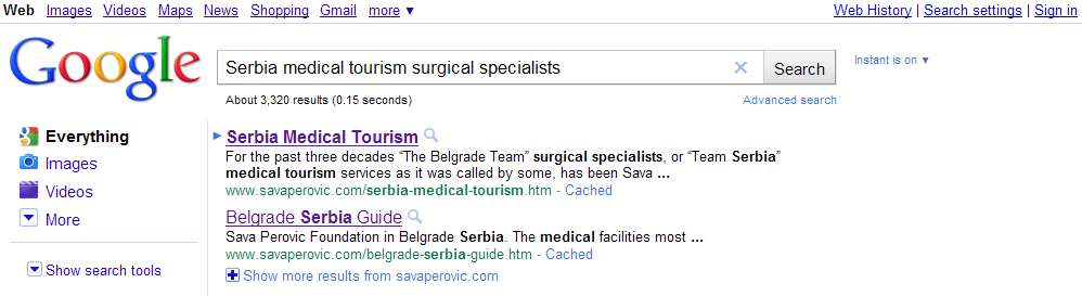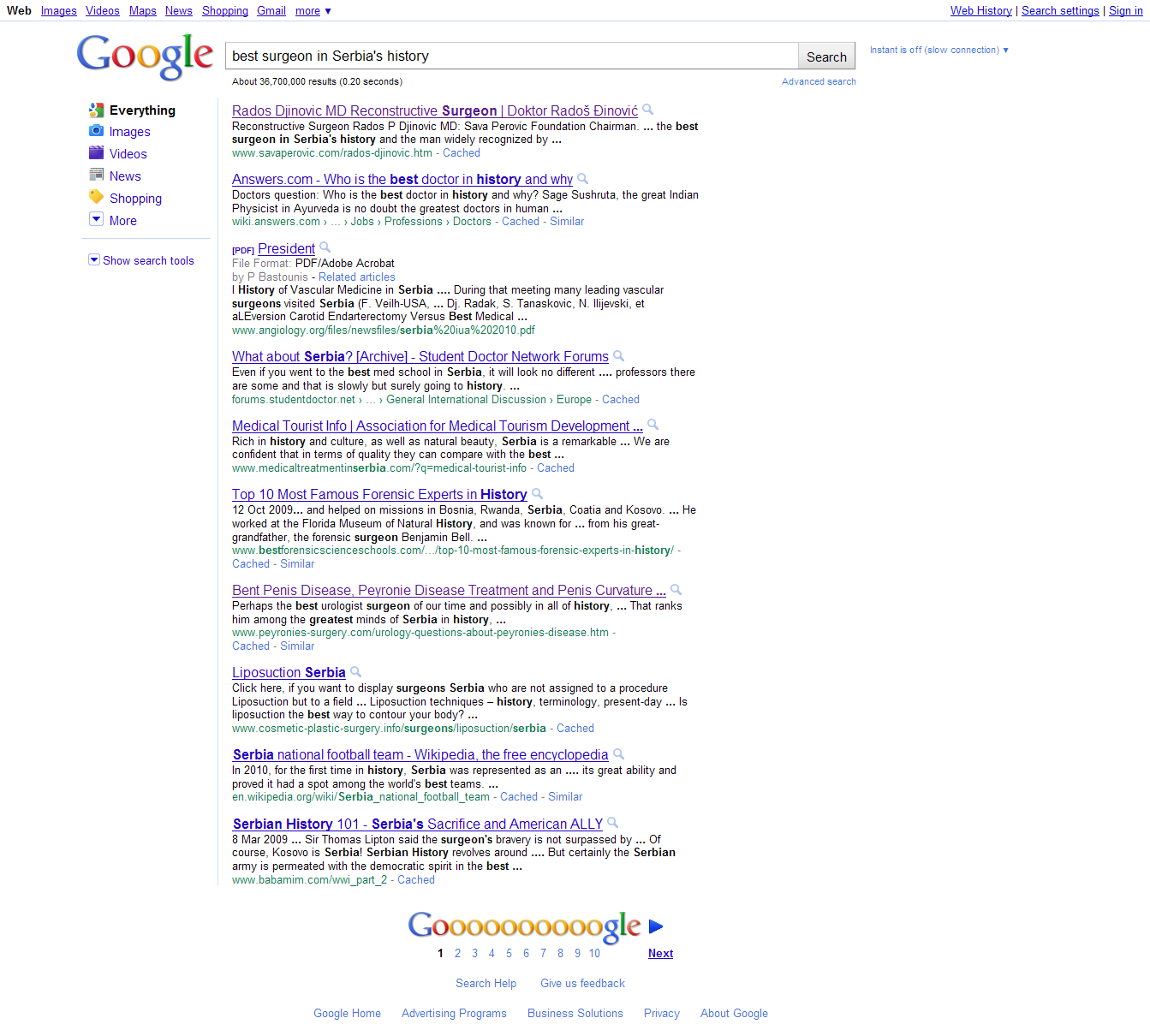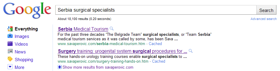 Google #1 & #2 "best reconstructive surgeon in Serbia"