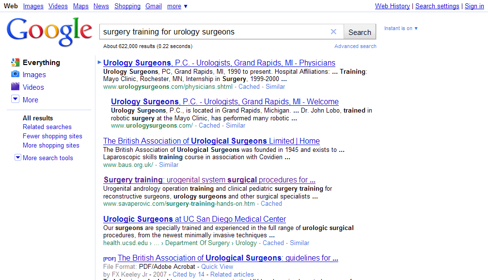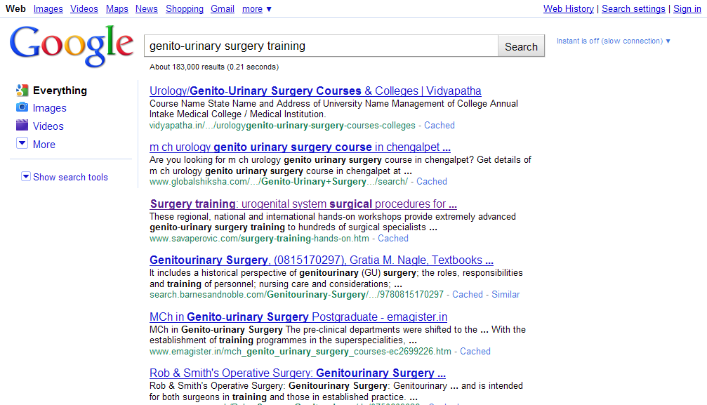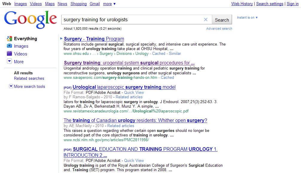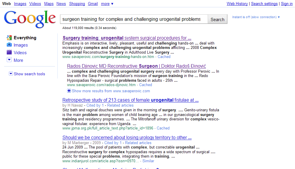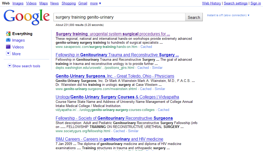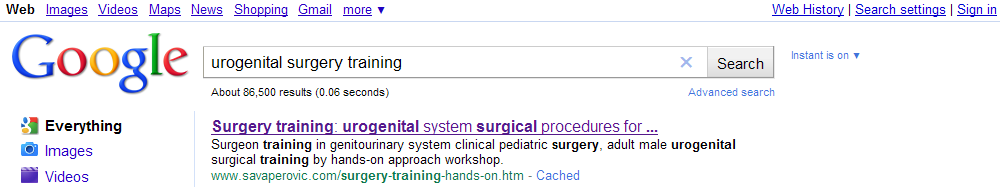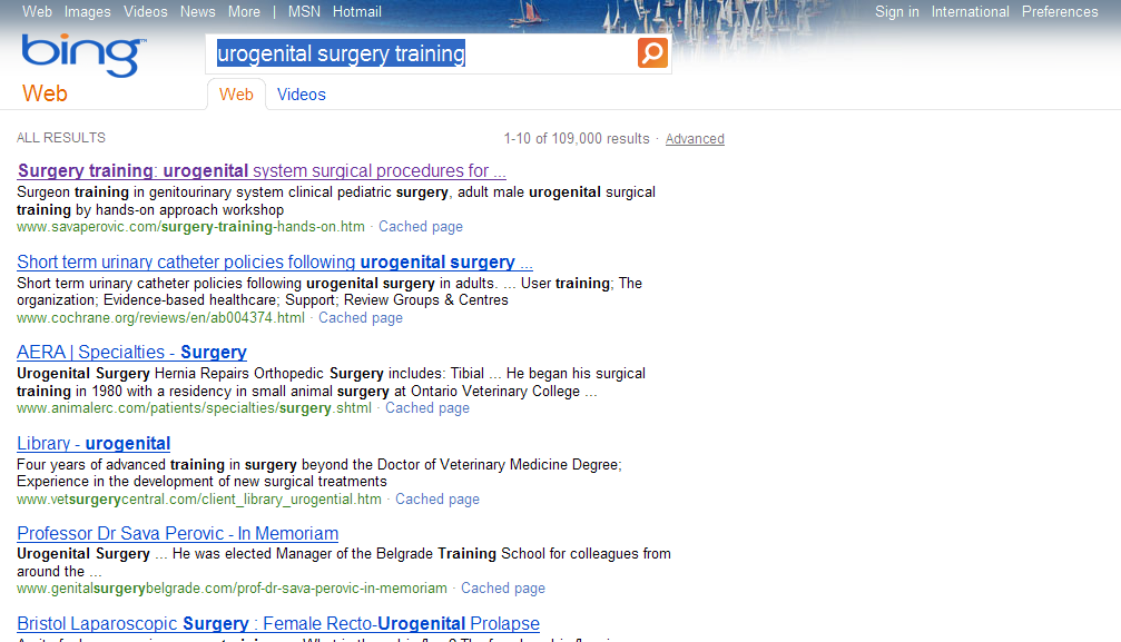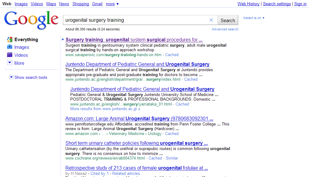 NEW 5 Nov 10 Google #1: "urogenital surgery training"
