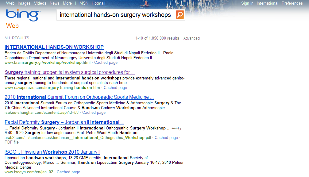 NEW 5 Nov 10 Google #1: "international hands-on workshops surgery training"