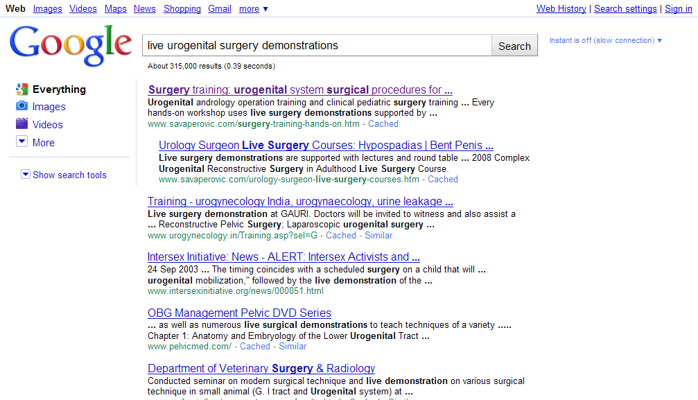 Google #1 & #2: "live urogenital surgery demonstrations"