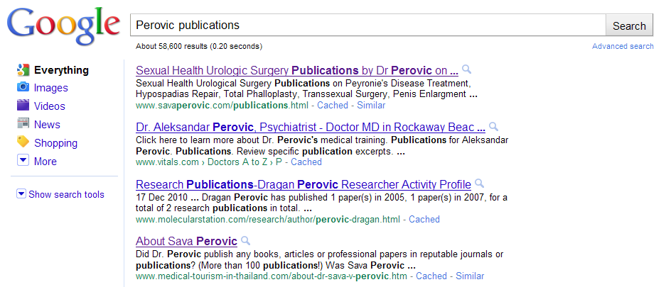 Bing #1, #2, #3 & #5: "perovic surgeon training"