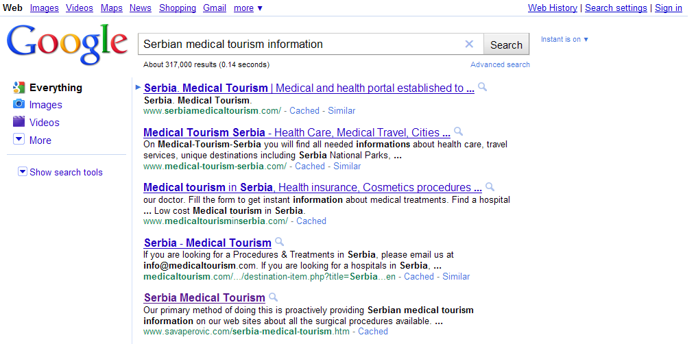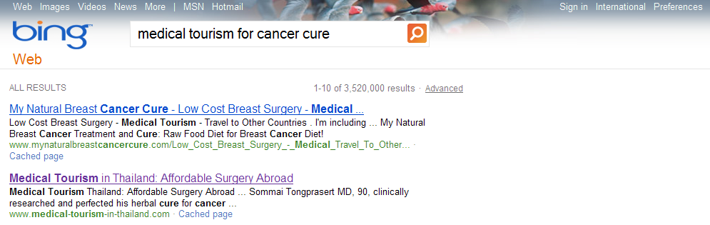 NEW 7 Nov 10 Bing #2: "medical tourism for cancer cure"