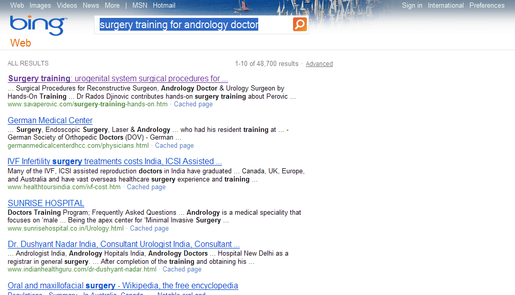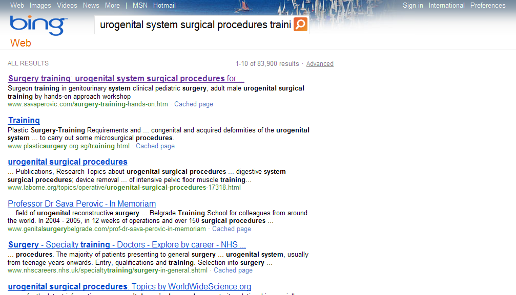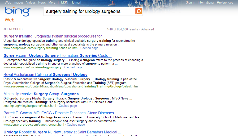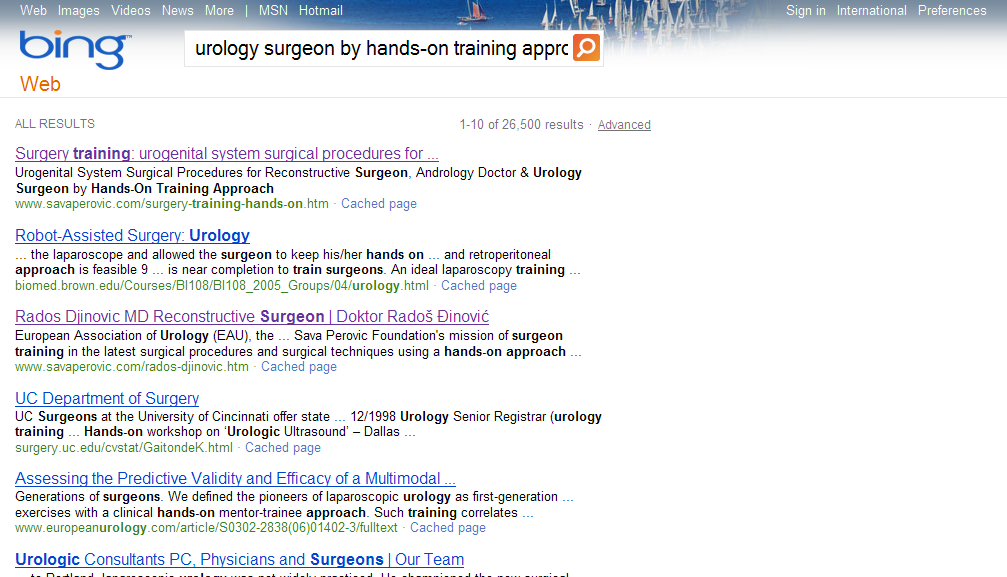 Bing #1 & #3: "urology surgeon by hands-on training approach"