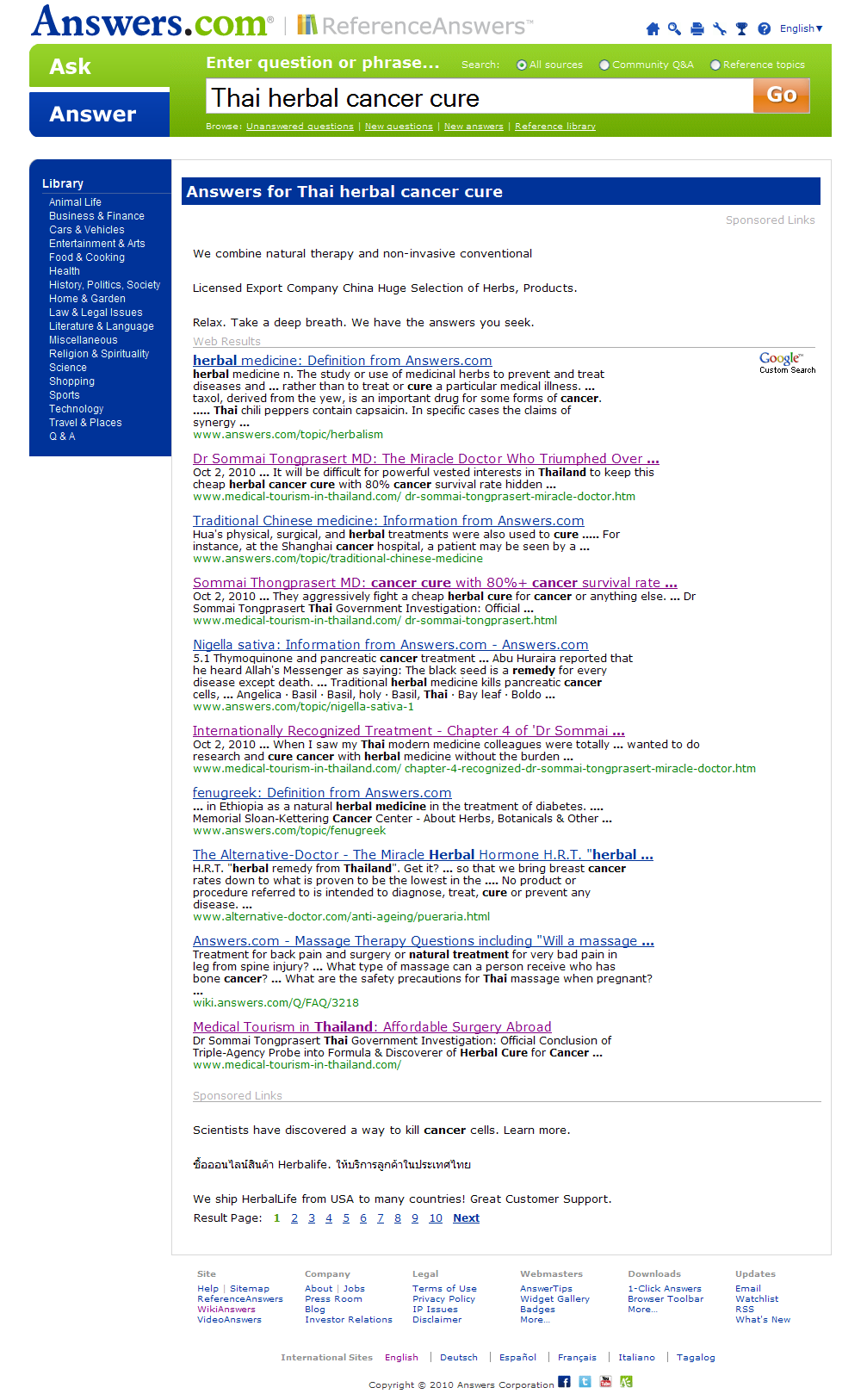 Answers.COM #2, #4, #8, #10: "Thai herbal cancer cure"