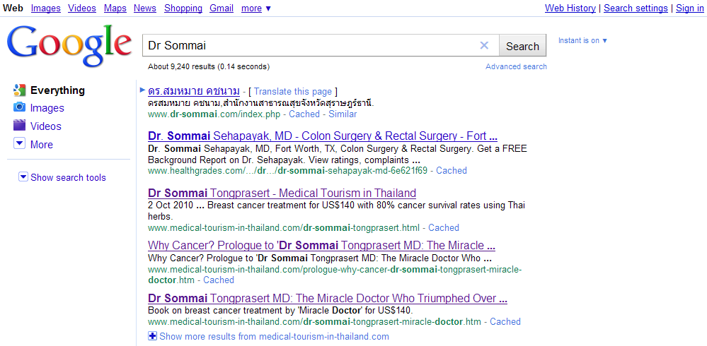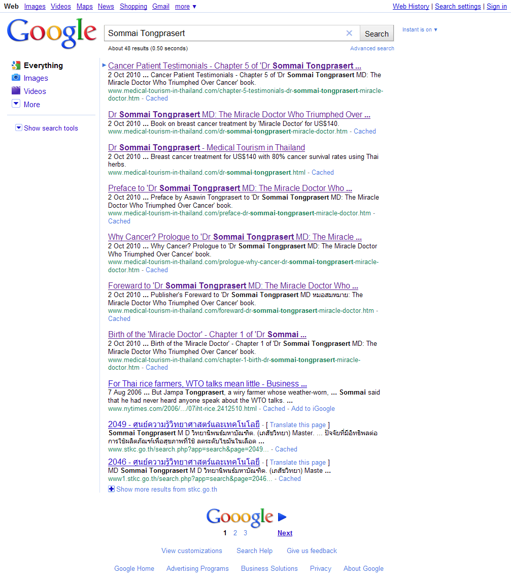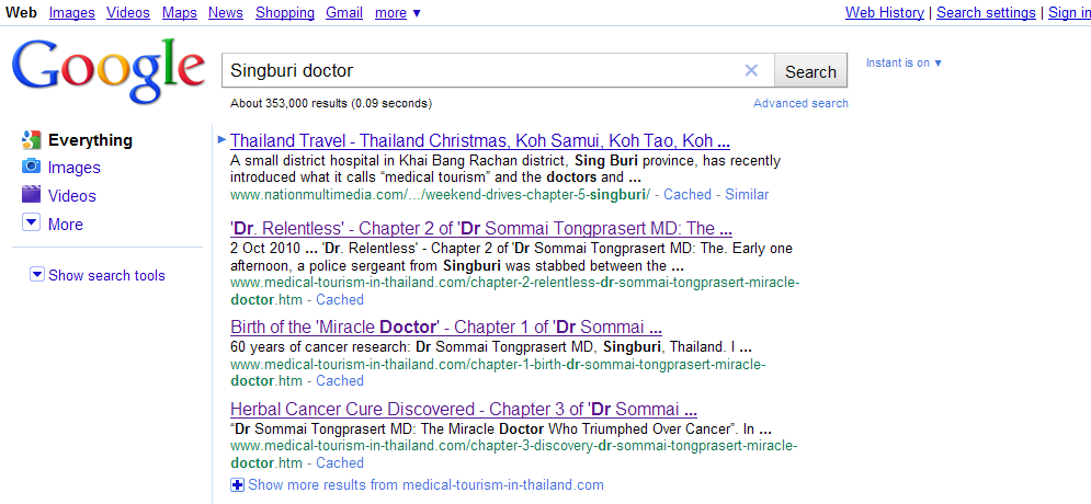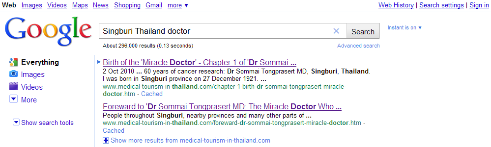 NEW 27 Nov 10 Google #1 & #13: "famous Thai cancer doctor"