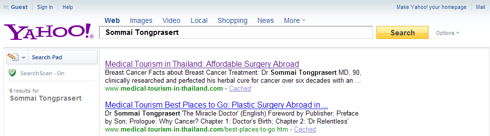 Yahoo #1 & #2: "Sommai Tongprasert"