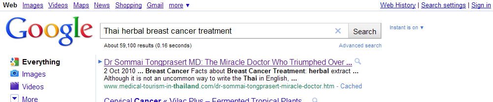 Google #1 & #2: "Thai herbal breast cancer cure"